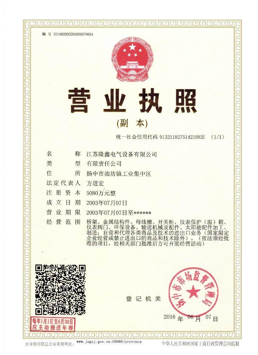 江蘇隆鑫電氣設(shè)備有限公司(原揚中市隆鑫電器設(shè)備有限公司)位于風景秀麗的江南古城 ---- 鎮(zhèn)江東部揚子江畔,水陸交通便利。 本公司是中石化網(wǎng)絡(luò)成員企業(yè),是揚中橋架企業(yè),工業(yè)管道閥門、儀表管配件、母線槽、匯線橋架、玻璃鋼制品的專業(yè)生產(chǎn)廠家。 我公司一貫以經(jīng)營以管理為保證、以科技進步為動力,使產(chǎn)品的市場占有率不斷提高,公司正持續(xù)、穩(wěn)步、健康地向前發(fā)展,秉循“創(chuàng)造完美、服務用戶、奉獻社會”的經(jīng)營觀念,本公司生產(chǎn)的儀表管件及閥門系列產(chǎn)品、母線槽、電纜橋架幾乎覆蓋全國31個省、市、自治區(qū)的化工、冶金、交通、輕...
